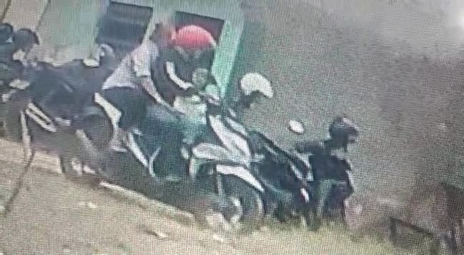 Dalam rekaman video yang beredar, tampak pelaku datang ke lokasi parkiran motor menggunakan motor matik warna putih dan membonceng seorang perempuan dan anak kecil.