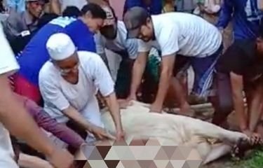 “Saat pemotongan sapi kurban ke tiga, Gunaidi ikut membantu proses penyembelihan. Gunaidi sempat memutari pohon tempat lokasi sapi disembelih,” kata Toni warga yang ikut menyembelih hewan kurban.