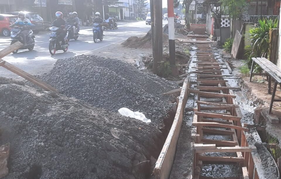 SPcom KAB MALANG – Warga yang terdampak proyek perbaikan drainase di Jalan Raya Asrikaton, Kecamatan Pakis, Kabupaten Malang, merasa dirugikan. Sebab kontraktor proyek tersebut hanya mengganti beton penutup maksimal dua meter.