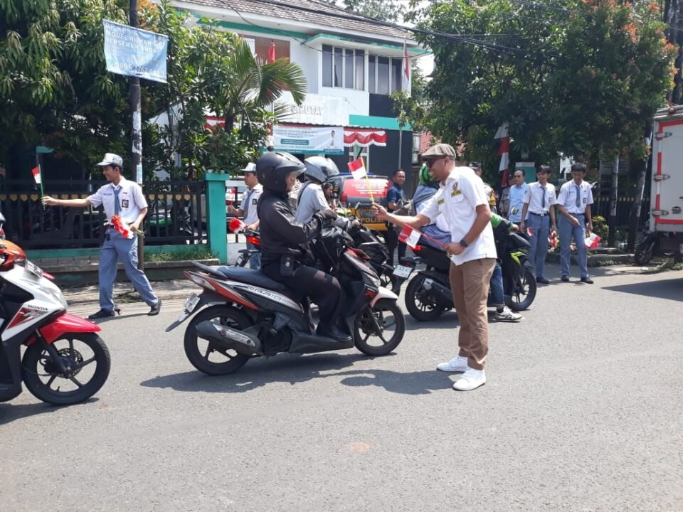 Sebanyak 1.000 bendera dibagikan kepada pengguna jalan di Jalan Ki Hajar Dewantoro, Ciputat. Sasaran mereka beragam, mulai dari pengendara sepeda motor dan mobil, ojek daring, hingga masyarakat umum.