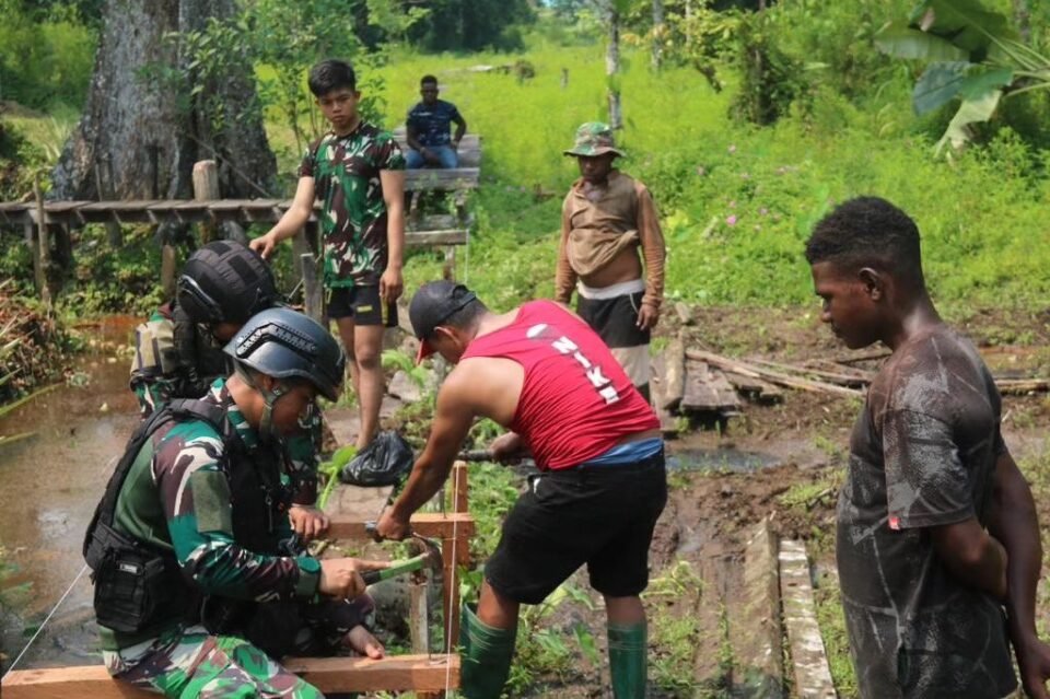 SPcom JAKARTA – Kerja keras Satgas Yonif 411 Kostrad terbayar lunas dengan senyuman bahagia warga Batas Batu, mereka bersama-sama membangun jembatan Sekolah Rimba di Batas Batu, Kabupaten Nduga, Provinsi Papua Pegunungan, pekan lalu.