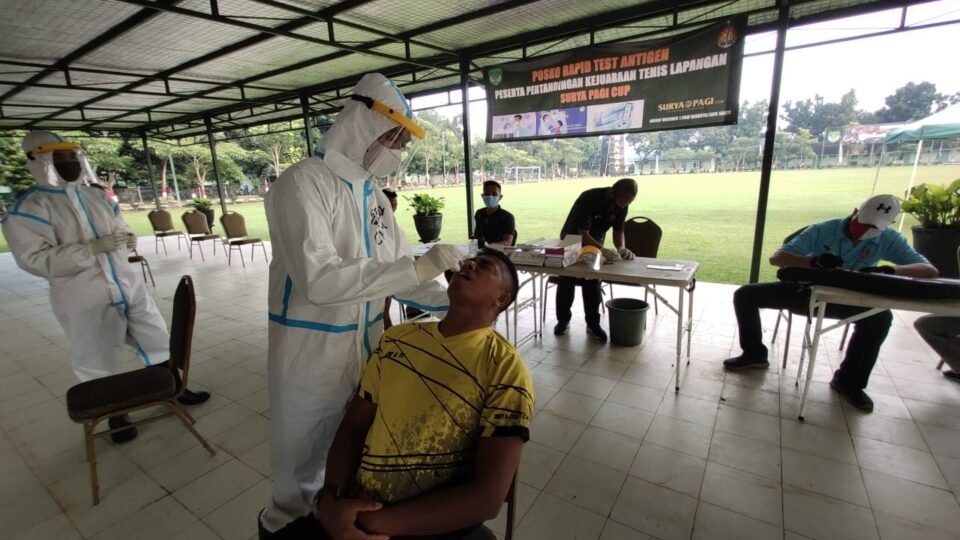 SPcom JAKARTA – Penyelenggaraan kejuaraan tenis beregu Surya Pagi Cup menerapkan protokol kesehatan Covid-19 dengan ketat. Seluruh peserta dan tamu diswab antigen sebelum masuk ke area kegiatan.