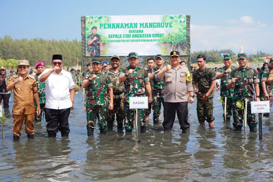 Hal tersebut disampaikan Kepala Staf Angkatan Darat (Kasad) Jenderal TNI Maruli Simanjuntak saat memimpin penanaman 8.500 bibit mangrove di areal 10,5 hektare, di Desa Gampong Blang, Meuraksa, Kota Banda Aceh, Senin (12/2/2024)