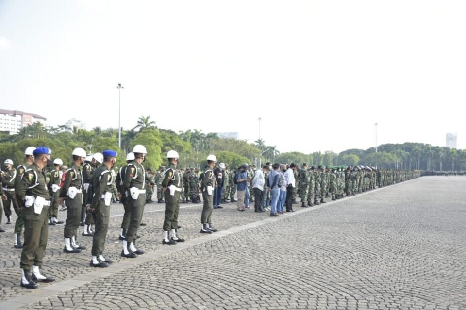 Dalam gelar pasukan di kawasan Monas, Jakarta Pusat, hadir Pangdam Jaya Mayjen TNI Dudung Abdurachman dan Kapolda Metro Jaya, Irjen Pol Fadil Imran.