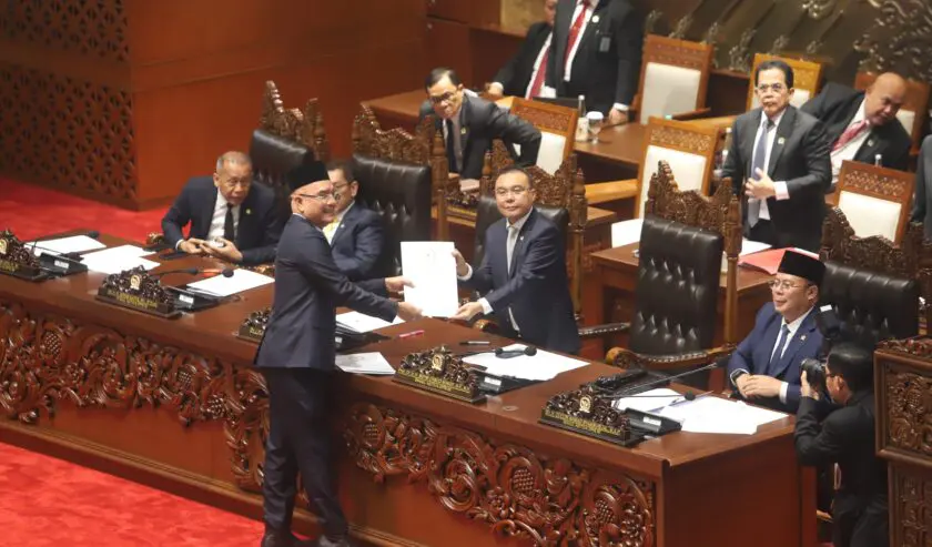 Rapat Paripurna pengesahan dipimpin Wakil Ketua DPR Cucun Ahmad Syamsurizal dari PKB, didampingi dua pimpinan DPR lain, yakni Sufmi Dasco Ahmad dan Saan Mustopa.