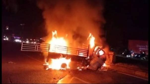 Kemudian pikap mengeluarkan api dan terbakar. Diduga kecelakaan diakibatkan sopir mengantuk. Akibat kecelakaan tersebut empat orang tewas terpanggang dan tiga orang lainnya mengalami luka-luka.