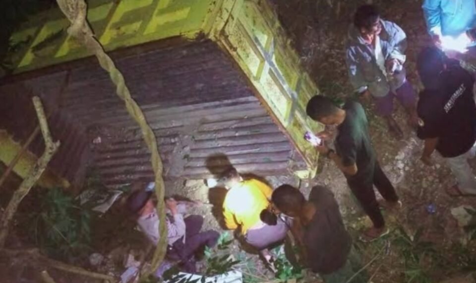 SPcom NTT – Truk dump yang tengah mengangkut 35 kotak suara terperosok ke dalam sungai di Desa Benulut, Batu Putih, Timor Tengah Selatan (TTS), Nusa Tenggara Timur (NTT), Sabtu (17/2) dini hari. Truk pun terguling hingga puluhan kotak suara Pemilu 2024 yang diangkut berserakan.
