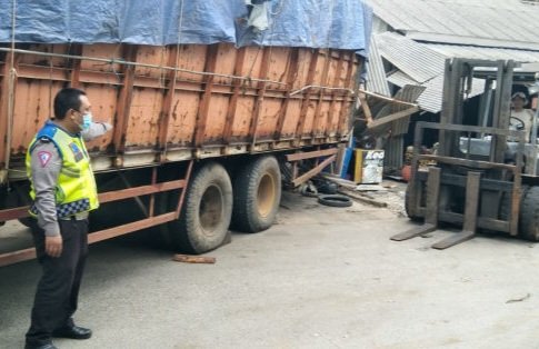 SPcom BOGOR – Sebuah truk menabrak tiga bangunan warung di Jalan Melati, Kelurahan Wanaherang, Kecamatan Gunung Putri, Kabupaten Bogor.