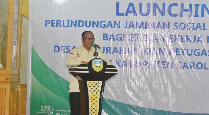 SPcom SAROLANGUN – Penjabat Bupati Sarolangun Bahri, bersama BPJS Ketenagakerjaan melakukan launching Perlindungan Jaminan Sosial Ketenagakerjaan Bagi 27.214 Pekerja Rentan Desa/Kelurahan Dan Petugas Adhoc Pilkada Di Kabupaten Sarolangun Tahun 2024, Rabu (06/11/2024).