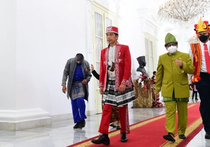 “Ini baju dari Buton, Sulawesi Tenggara. Ini baju Dolomani dari Buton,” kata Jokowi kepada wartawan di Istana Kepresidenan Jakarta, Rabu, (17/8/2022).
