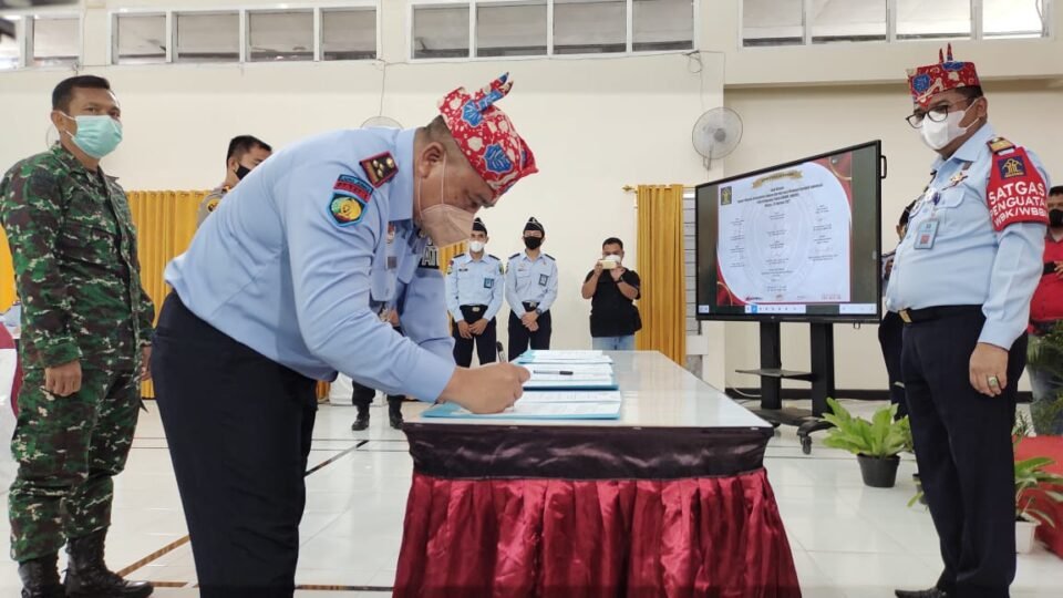 SPcom JEMBER – UPT Korwil Jember, Kantor Wilayah (Kanwil) Kementerian Hukum dan HAM Jawa Timur menggelar deklarasi janji kerja pencanangan integritas menuju WBK/WBBM dan pendeklarasian satuan operasi patroli internal (Satopspatnal), di aula lapas klas II A Jember.