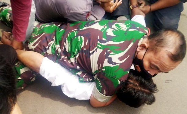SPcom DEPOK – Viral di media sosial potongan video yang memperliahtkan personil TNI sedang menindih seorang pria berbaju putih. Video itu bernarasi anggota TNI sedang memaksa pria berkemeja itu untuk vaksin di wilayah Depok.