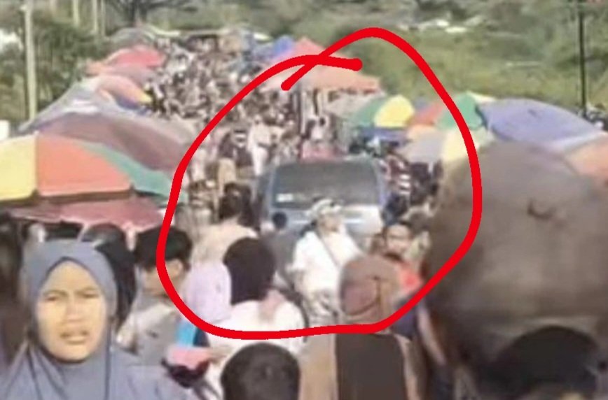 Dalam video tersebut nampak satu mobil angkot berada di tengah kerumunan orang di pasar kaget. Seseorang yang ada dalam video terdengar berteriak menyebut angkot tersebut tak memiliki rem atau rem blong.