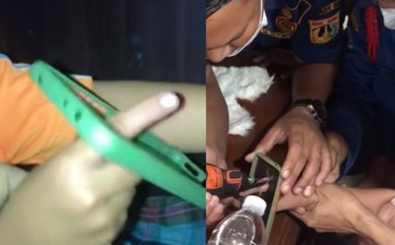 “Ia ditemani orang tuanya untuk mengeluarkan jari telunjuk tangan kanan yang tersangkut dari pelindung HP,” kata petugas Damkar DKI, Selasa (29/3/2022).