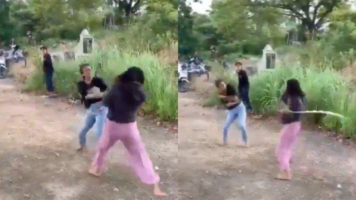 SPcom PALEMBANG – Sebuah video yang memperlihatkan dua remaja putri berduel di salah satu Tempat Pemakaman Umum (TPU) di Palembang, Sumatera Selatan, viral di media sosial .Dalam video itu keduanya tampak memegang senjata tajam jenis celurit.