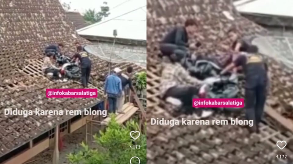 Viral Dua Wanita Nyangkut di Atap Rumah Usai Kecelakaan Motor