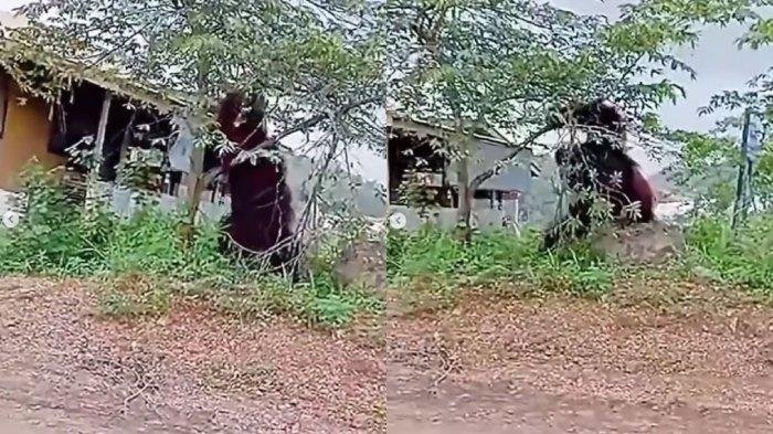 Dari video tersebut nampak orang utan berada di sebuah pohon dekat permukiman warga dengan ukuran orang utan saat berdiri tingginya hampir mencapai rumah warga. (SP)