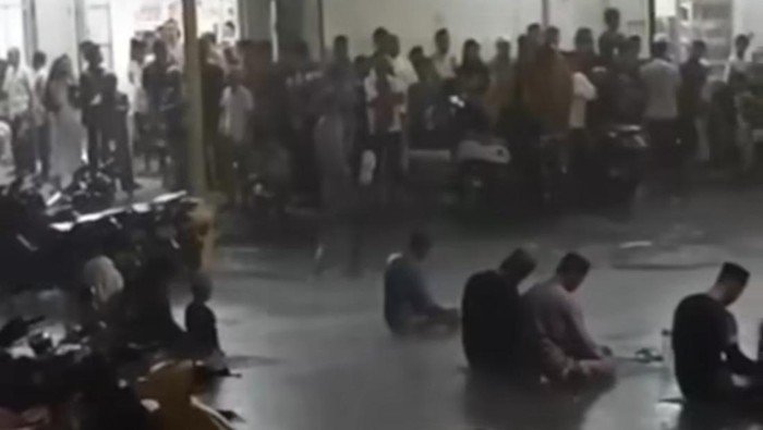Video yang diunggah oleh akun Instagram @parepareinfo itu memperlihatkan beberapa jemaah laki-laki yang sedang melaksanakan salat Tarawih di lingkungan terbuka beralaskan terpal biru.
