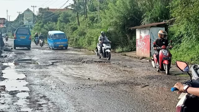 Dalam cuplikan video, tampak jalan tersebut telah hancur. Kemacetan juga terjadi di jalan tersebut akibat dipenuhi pemotor.