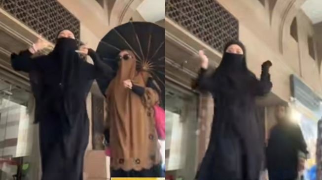 Video itu memperlihatkan seorang perempuan yang mengenakan dress hitam bercadar, merekam dirinya berjoget di sebuah trotoar di Tanah Suci. Ia tampak begitu percaya diri menggerakkan seluruh tubuhnya di depan kamera.