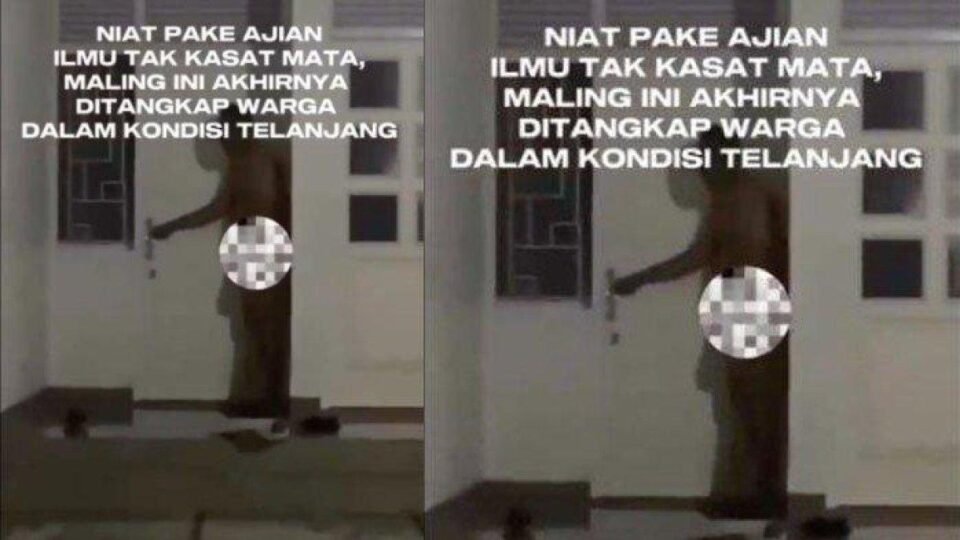 “Niat pakai ajian ilmu tak kasat mata, maling ini akhirnya ditangkap warga dalam kondisi telanjang,” sebagaimana narasi pada video yang diunggah akun X @kegblgnunfaedh, Senin (1/1/2024).