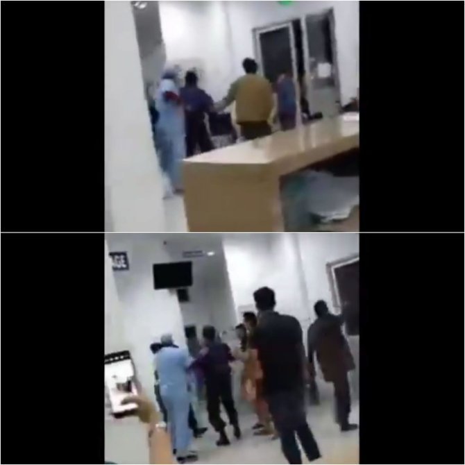 Keributan kemudian terjadi antara sekelompok pria dengan petugas rumah sakit. Ada yang terlihat merusak fasilitas yang ada di RS.
