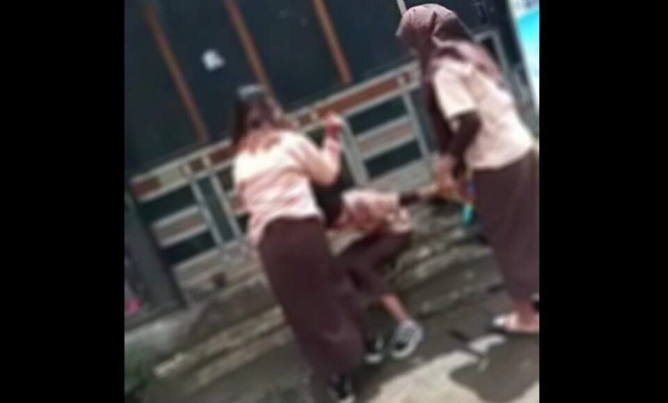 Dalam video itu, tampak 2 siswi SMP tarik menarik rambut hingga keduanya berguling di atas tanah. Perkelahian baru berhenti setelah salah satu rekannya melerai.