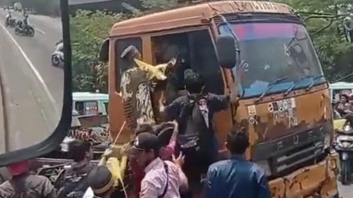 Dalam video tersebut, truk kontainer tersebut terlihat dikeliling sejumlah motor rombongan pengantar jenazah. Lalu sopir truk itu terlihat dianiaya oleh mereka.