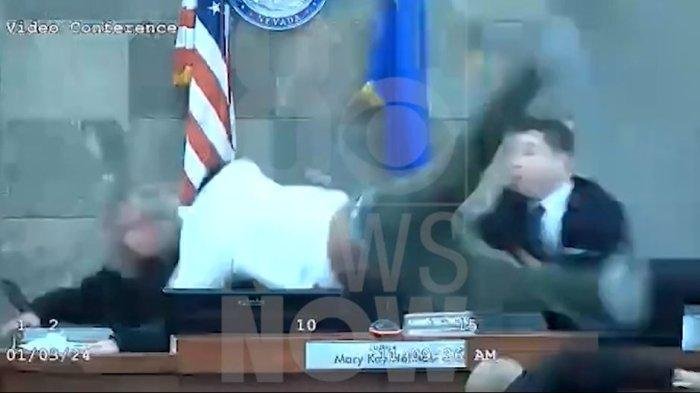 Insiden itu terekam video di ruang sidang dan dirilis seorang hakim Nevada. Holthus terjatuh dari kursinya lalu membentur tembok setelah diterjang oleh Redden. Saat itu seorang petugas pengadilan langsung membantu Holthus, namun juga terkena serangan.