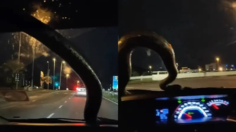 Viral! Ular Tiba-tiba Muncul di Kaca Mobil Saat Berkendara di Jalan, BPBD Turun Tangan