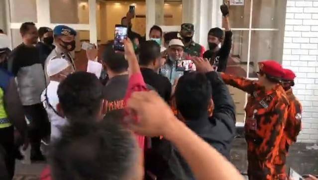 Mereka terus berteriak hingga akhirnya Babe Haikal keluar dari ruangan. Babe Haikal dikawal oleh sejumlah aparat keamanan. Selanjutnya, Babe Haikal naik ke dalam mobil, kemudian meninggalkan lokasi.