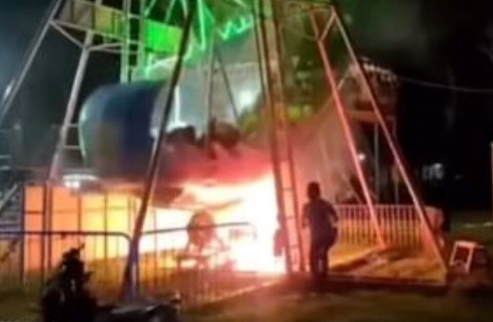Dari video yang beredar di media sosial, terlihat kobaran api dari bagian bawah wahana yang sedang dinaiki sejumlah pengunjung tersebut. Para pengunjung histeris melihat api semakin membesar.