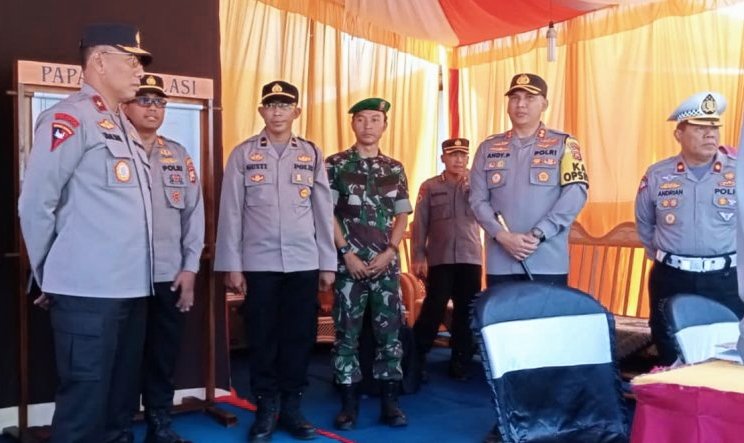 SPcom BENGKULU – Wakapolda Bengkulu Brigjen Pol Umardani, didampingi Kapolres Bengkulu Utara AKBP Andy Pramudya Wardana mengecek kesiapan Pos Pelayan dan Pos Pengamanan Idul Fitri 1444 H, Rabu (19/4/2023).