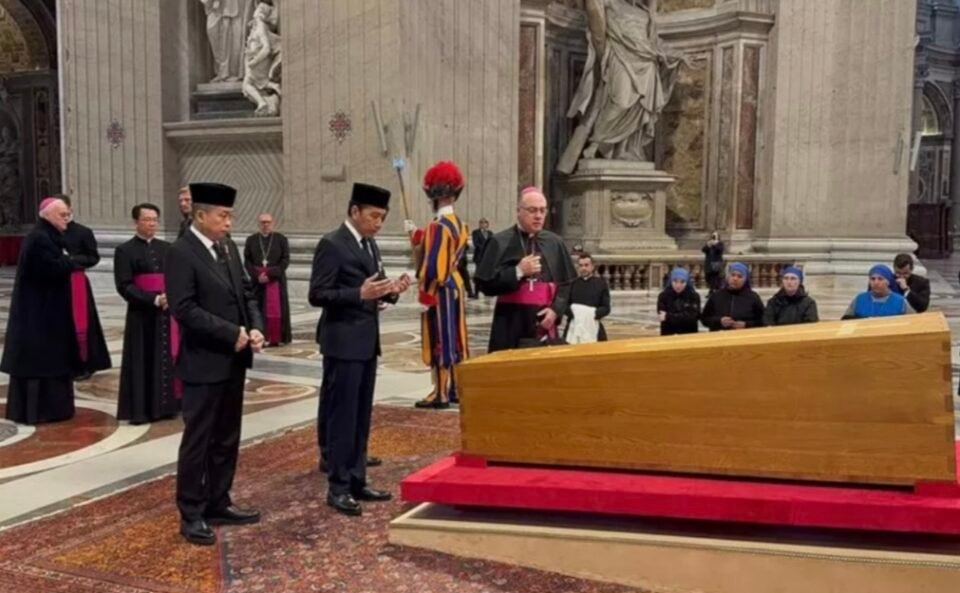 “Pertama-tama kami ingin menyampaikan ucapan duka cita yang mendalam atas wafatnya Yang Teramat Suci Paus Fransiskus. Dan juga menyampaikan pesan dari Presiden Prabowo Subianto serta seluruh umat Katolik yang menghadiri pemakaman di Vatikan,” ujar Jokowi.